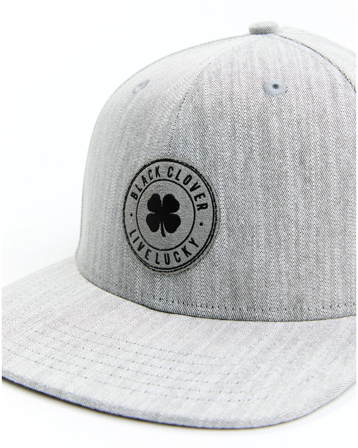 - Printed suede patch on center front