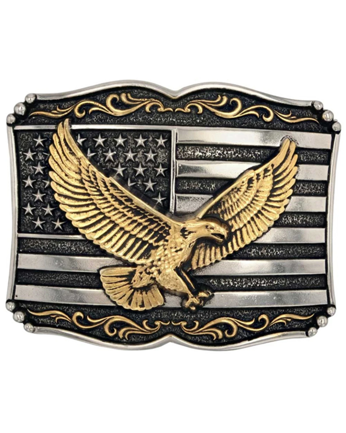 - Silver-toned American flag with gold-toned soaring eagle in center