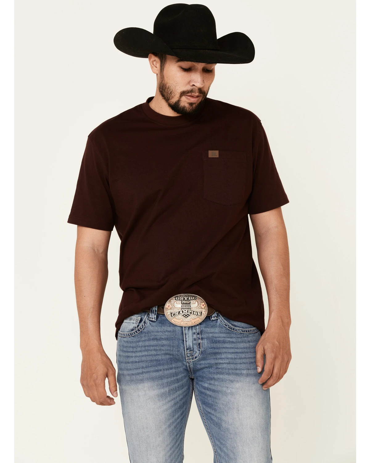 - Heavy “V” stitching detail on both pockets